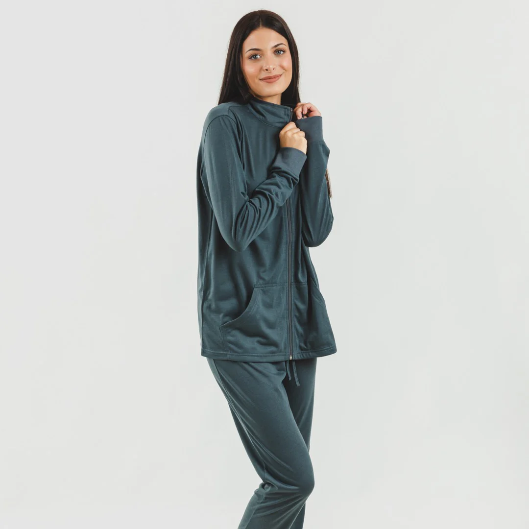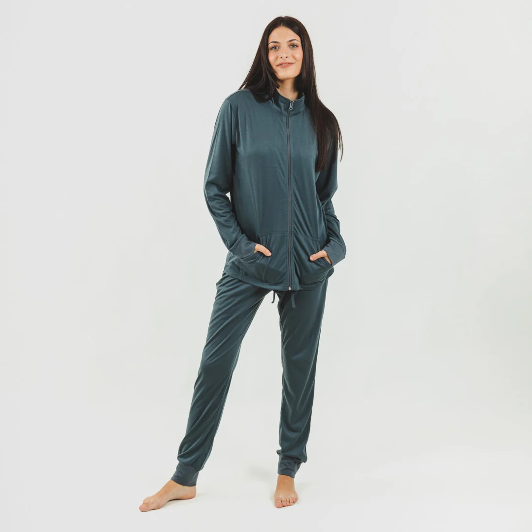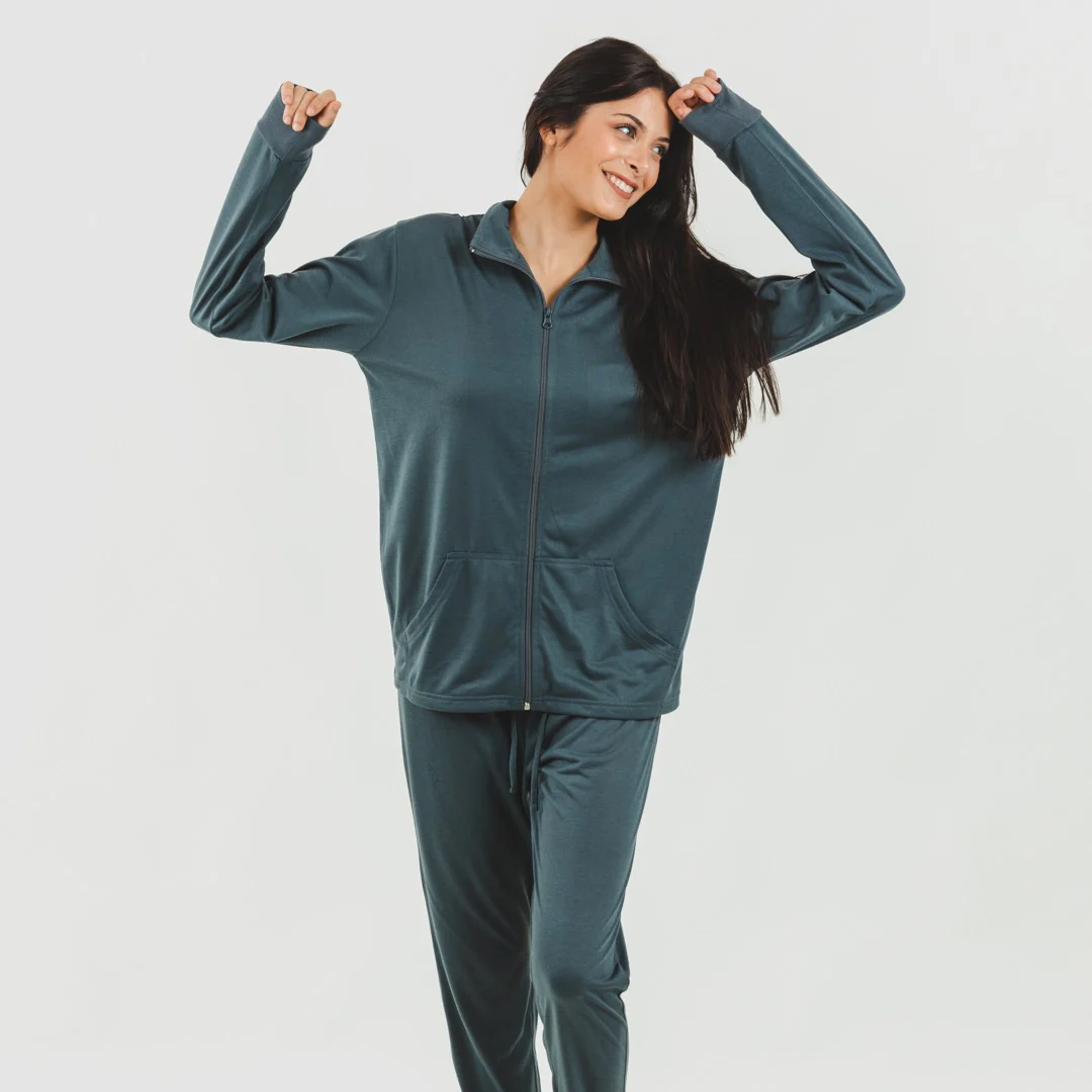 Conjunto deportivo chaqueta cremallera mujer verde azulado