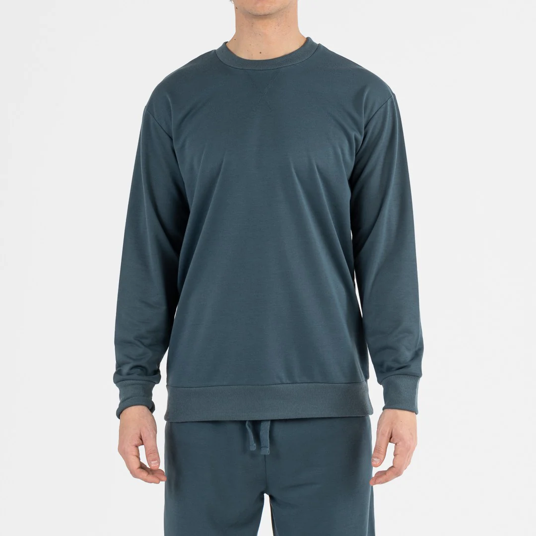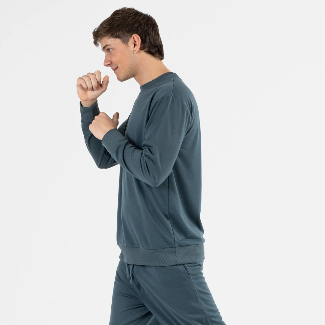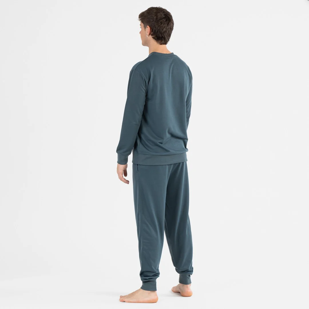Chándal formado por dos piezas, una sudadera de manga larga con cuello redondo y puño en la manga y, un pantalón con la cintura elástica ajustable por un lazo, bolsillos laterales y puño elástico en el bajo.
