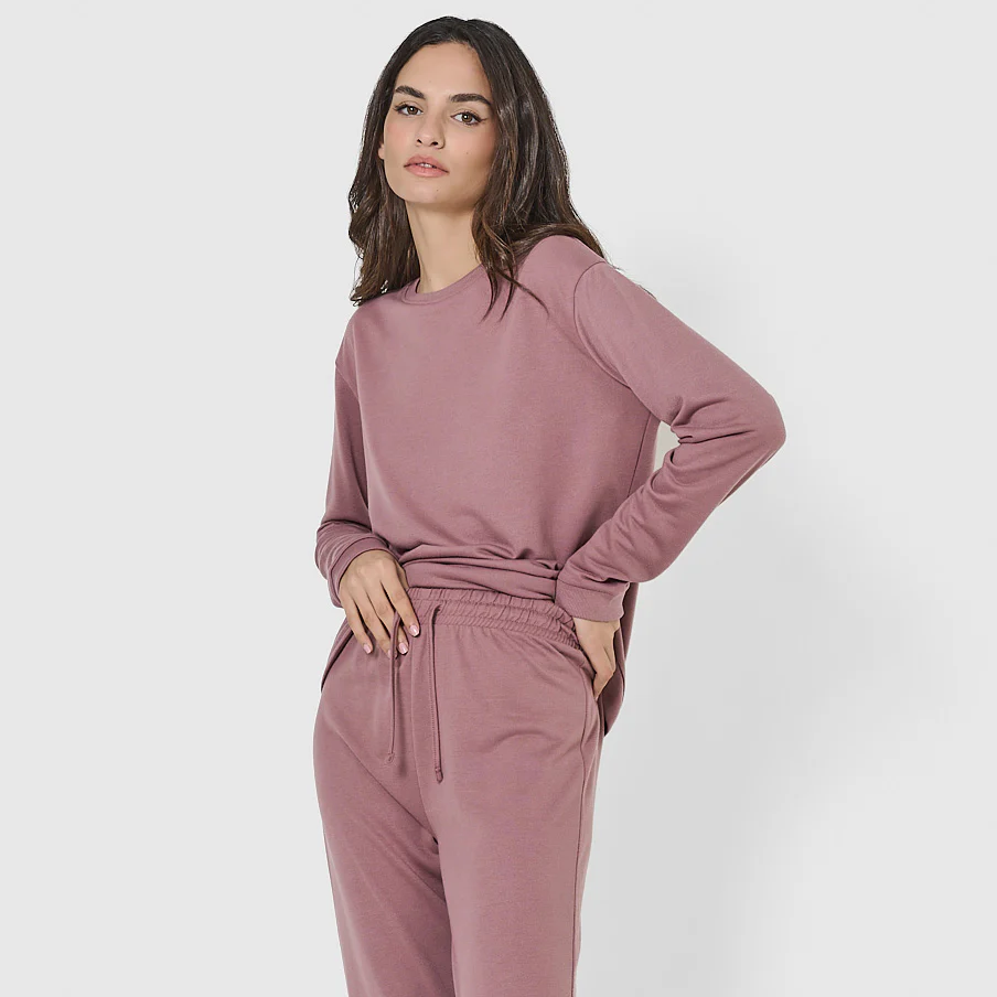 Pantalón largo básico deportivo. Diseño de estilo deportivo/homewear con cintura elástica ajustable y pernera recta ligeramente entallada. Acabados sencillos. Prenda cómoda para el uso diario y momentos de descanso.