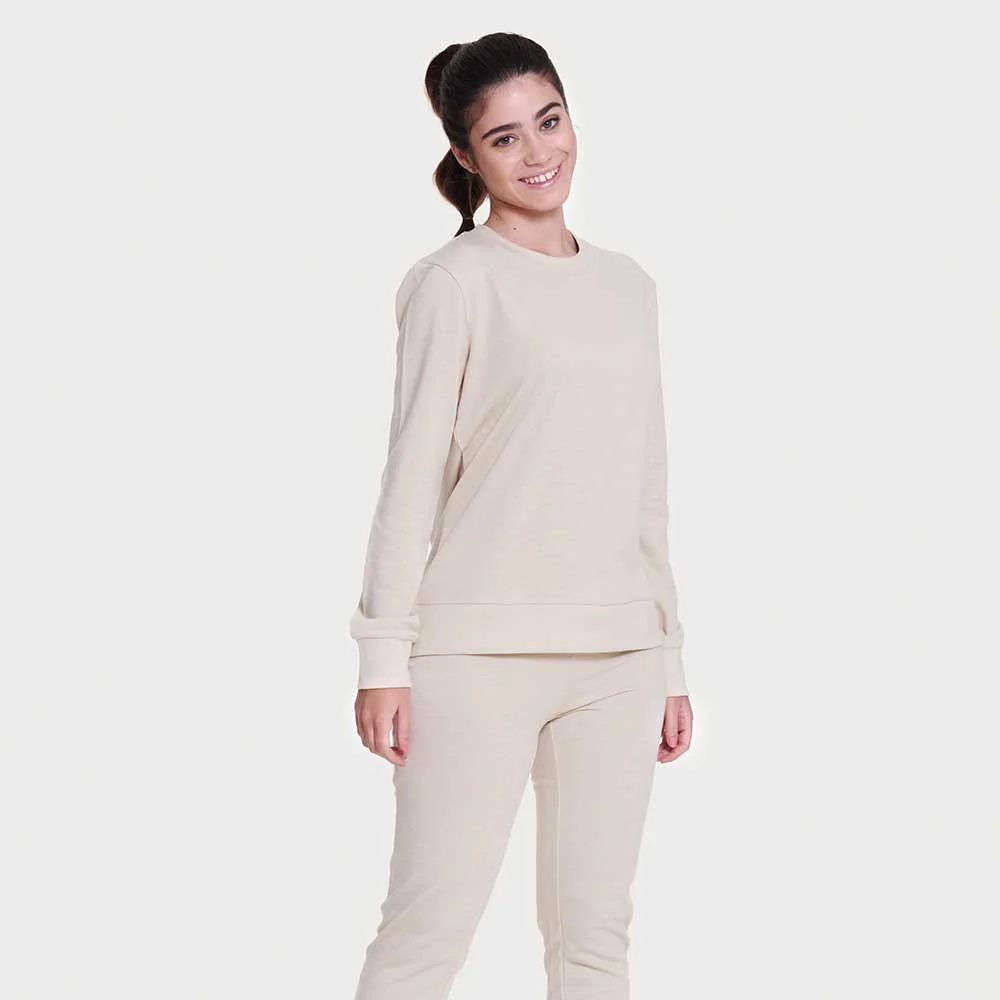Set formado por dos piezas, una sudadera de manga larga con cuello redondo y puño en la manga y, un pantalón con la cintura elástica ajustable por un lazo y puño elástico en el bajo.